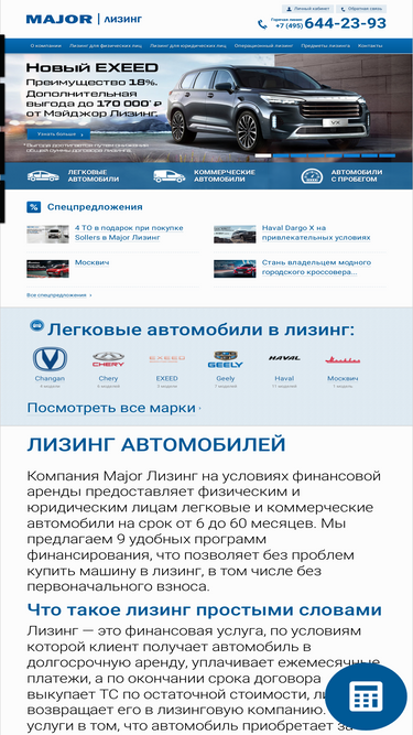 76%вы можете купить автомобиль в лизинг в москве на официальном сайте major лизинг. взять машину в лизинг на выгодных условиях для физических и юридических лиц без первоначального взноса.