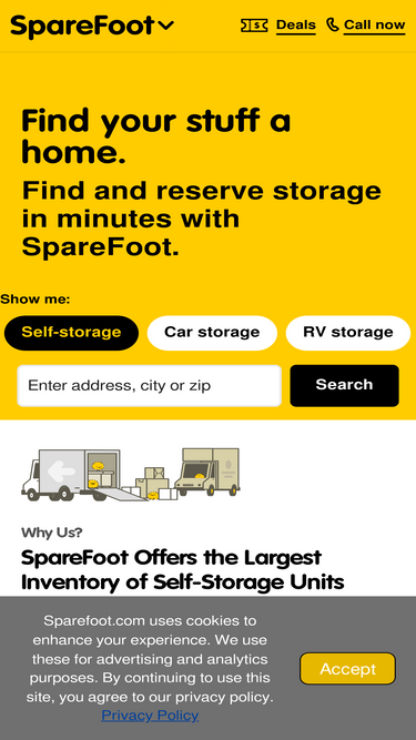 88%SpareFoot is the world's largest marketplace for moving and storage. Find exclusive deals and read thousands of customer reviews.