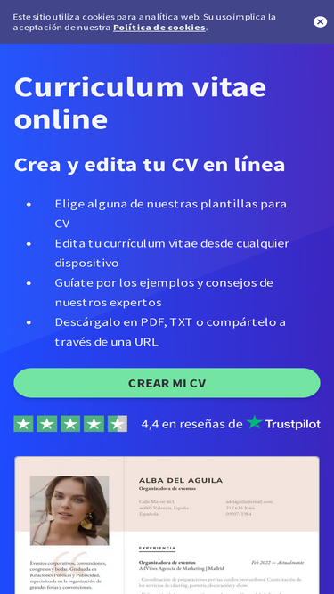 97%Crea tu currículum en línea en pocos pasos con el editor de OnlineCV. ¡Usa nuestra IA y plantillas y consigue el documento perfecto para encontrar empleo!