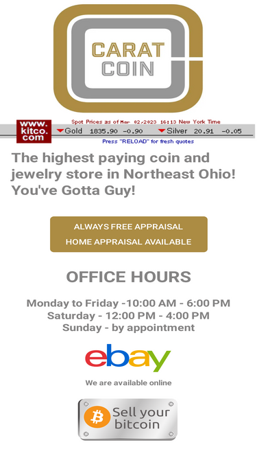 100%We invite greater Dayton (Ohio) or surrounding area residents to visit our store for all your numismatic needs. Coins, coin supplies; we buy and sell.