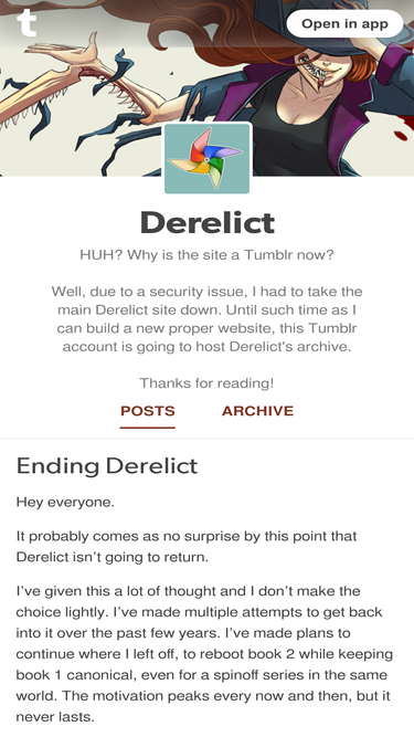 72%huh? why is the site a tumblr now? well, due to a security issue, i had to take the main derelict site down. until such time as i can build a new proper website, this tumblr account is going to host...