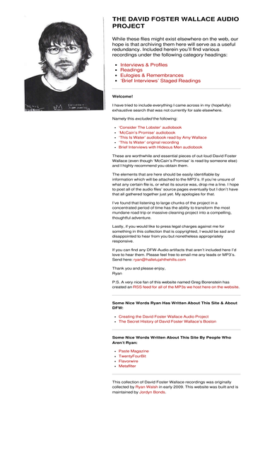 100%Sito italiano dedicato allo scrittore americano David Foster Wallace e alle sue opere. Vi invitiamo...