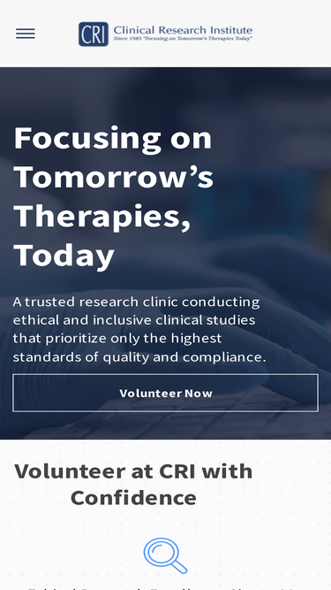 91%Volunteer at CRI’s trusted research clinic, where ethical excellence meets participant safety. Explore clinical studies led by experienced physicians.