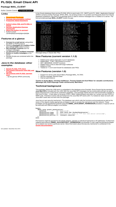 82%the pl/sql package mail_client allows to retrieve email messages from a mailserver via the pop or imap protocol.