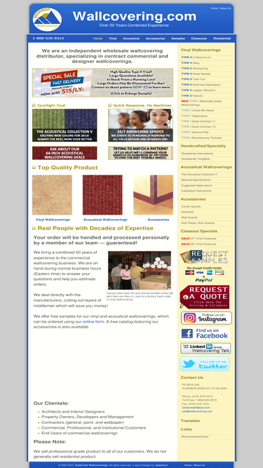 100%wallcovering.com offers commerical-grade vinyl wallcoverings, acoustical wallcoverings and corner guards.