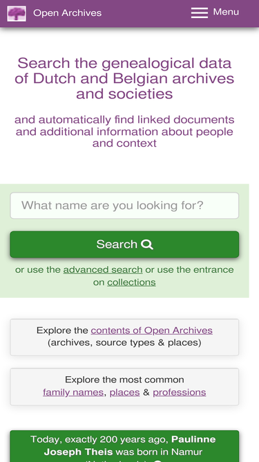 80%Search the genealogical data of Dutch and Belgian archives and societies.