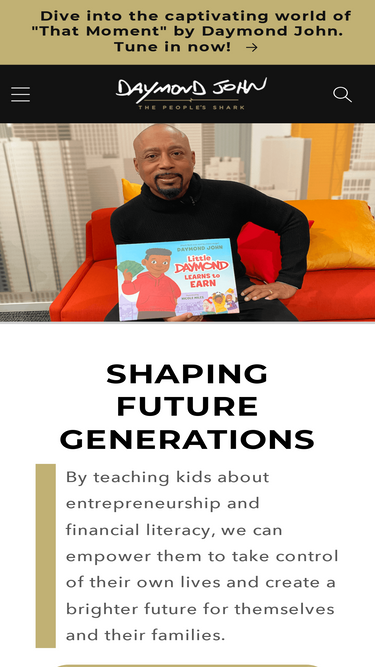 88%From humble beginnings to a self-made multimillionaire with over $6 billion to date in global product sales and a starring role on ABC’s business reality TV show, Shark Tank. As "The People's Shark", Daymond continues to set standards of excellence while expanding his interests in fashion, branding, marketing, consulti