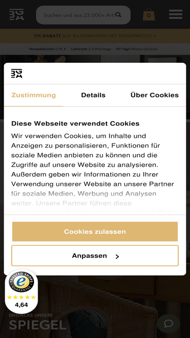 93%Zubehör für Poster und Bilder. Hier findest du alles, was du brauchst, damit dein Bild auch richtig zur Geltung kommt - von Passepartouts zum Einrahmen bis hin zu verschiedensten Aufhängungsalternativen.
