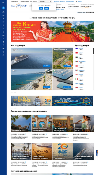 97%туры и круизы по всему миру от туроператора pac group. работаем с 1990 года, генеральный представитель круизной компании msc cruises. поиск туров, круизов, авиабилетов, широкий ассортимент экскурсионных программ, авторские туры, термальные и spa-курорты, образовательные поездки.