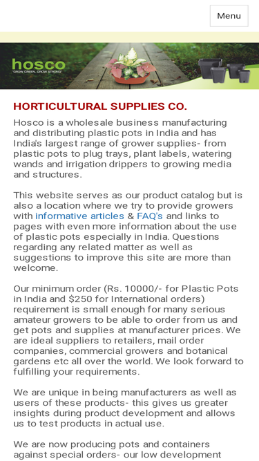 99%plastic pots , grower pots, plant containers, multipurpose trays, perma plug trays, watering wands, plant labels, plant irrigation, growing media, structures, benching from horticulture supplies co. india