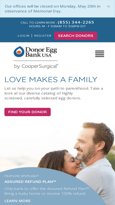 97%find – or become - the perfect egg donor today! diverse egg donor profiles and a growing catalog. personalized support through your egg donation process. assured refund plan, 100% money-back guarantee. apply and fulfill your dreams!