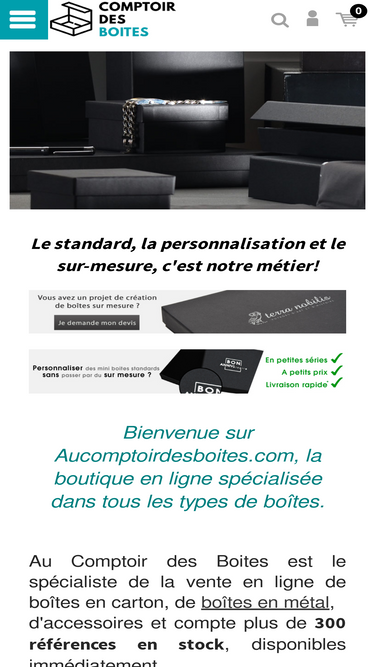 97%Bienvenue chez le spécialiste de la vente en ligne de boîtes en carton. Un projet ? Découvrez notre savoir-faire et notre expertise en personnalisation de boites.
