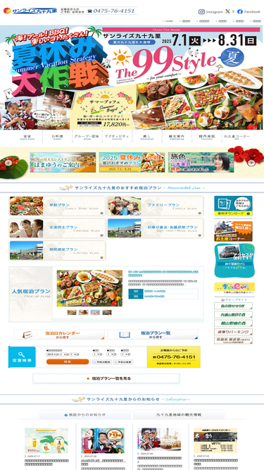千葉にある国民宿舎「オーシャンビューリゾート サンライズ九十九里」は全室太平洋が一望できる宿泊施設です。展望風呂、屋内温水プール、テニスコート、多目的ホール、レストラン、ゲームコーナーなど館内施設も充実!海水浴などのレジャーも楽しめます。