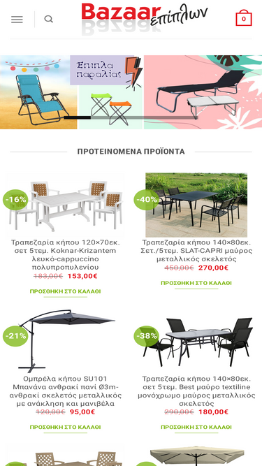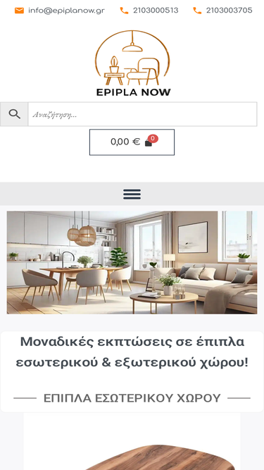 87%Έπιπλα εσωτερικού & εξωτερικού χώρου, διακόσμηση και λύσεις για κάθε σπίτι. Μεγάλη ποικιλία, άμεση αποστολή σε όλη την Ελλάδα σε κορυφαίες τιμές.