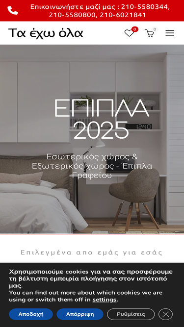 89%Στο e-shop ΤΑ ΕΧΩ ΟΛΑ σας προσφέρουμε μια μοναδική συλλογή επίπλων για κάθε γωνιά του σπιτιού σας. Ανανεωμένα design, υψηλή ποιότητα και λειτουργικότητα που συνδυάζεται με άνεση και στυλ. Ανακαλύψτε τώρα την ιδανική λύση για τον προσωπικό και επαγγελματικό σας χώρο στο taexwola.gr και εξερευνήστε την πλούσια γκάμα προϊόντων μας, που περιλαμβάνει διάφορα είδη επίπλων για κάθε στυλ και ανάγκη διακόσμησης!