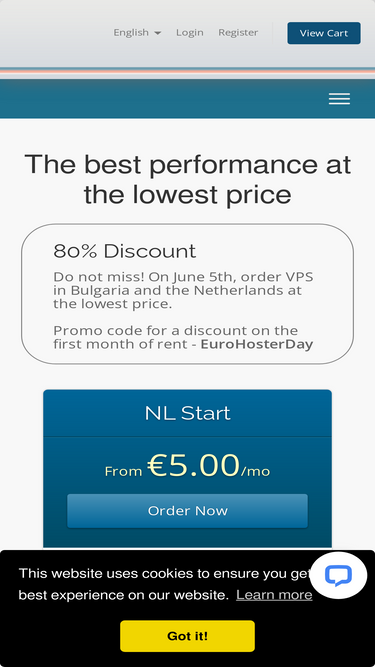 87%Высокопроизводительные виртуальные серверы VPS с размещением в Европе. Аренда виртуальных серверов по доступной цене - EuroHoster Ltd. Всегда высокая скорость и стабильная работа.