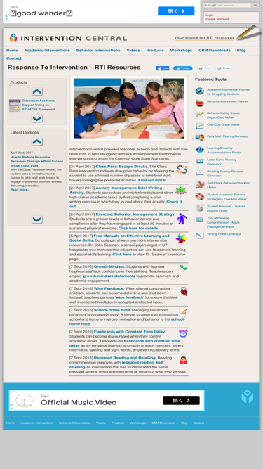 89%intervention central is the leading resource for response to intervention (rti) tools and resources, including academic and behavior interventions for classroom management.