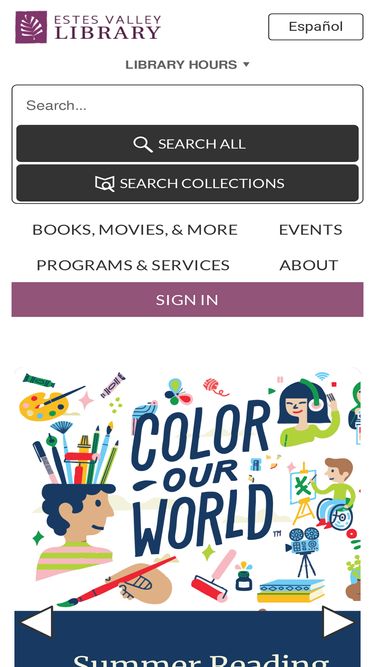 71%the estes valley library in downtown estes park, colorado library serves local and seasonal residents of the estes valley and visitors to estes park and rocky mountain national park.