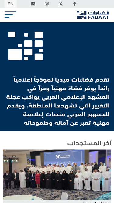 55%تعتبر مجموعة فضاءات ميديا اليوم واحدة من كبرى شبكات الإعلام في العالم العربي، حيث يصل انتاجنا الإعلامي إلى عشرات الملايين من المشاهدين والقراء في العالم من خلال منصات المجموعة المختلفة.