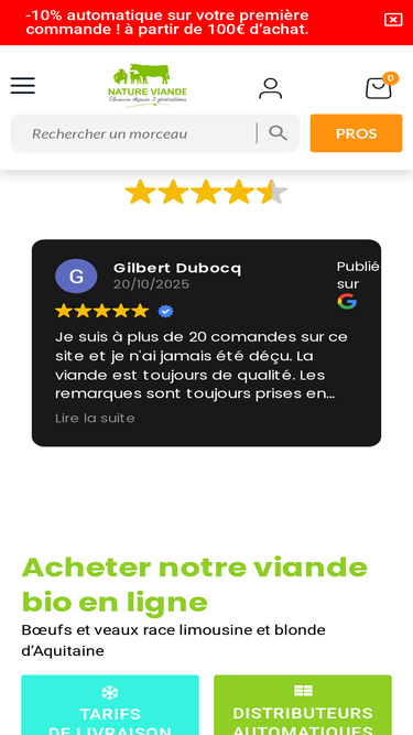 89%Découvrez Les Colis du Boucher, boucherie en ligne et votre lien avec les éleveurs d’Auvergne depuis 2010 : viandes Bio & Label Rouge, circuit court, qualité garantie, livraison réfrigérée France. Commandez maintenant !