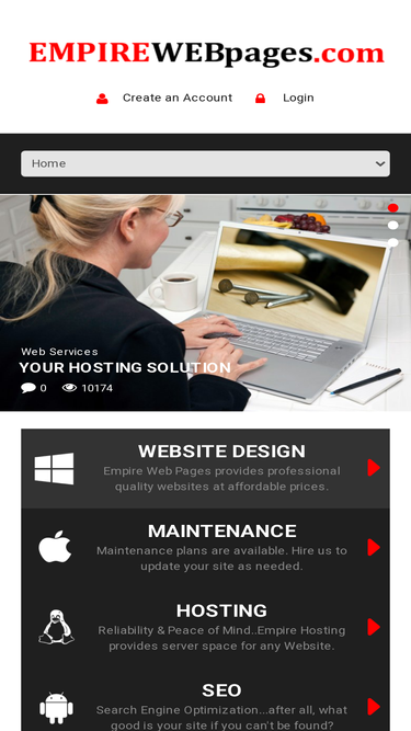 100%empire web pages:: website development, website templates, hosting, seo and content management system installation and cusomization. | web site development, maintenance & hosting since 1995!