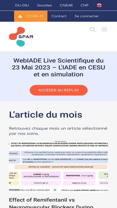 60%La SFAR est une société savante qui a pour mission de promouvoir la recherche, la formation et les bonnes pratiques professionnelles dans les domaines de l’ Anesthésie, la Réanimation et la Médecine Péri-opératoire.