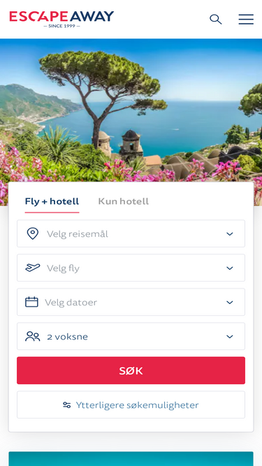 89%bestill reisen hos escapeaway, inkl. hotell, fly og leiebil. pakkereiser med full fleksibilitet, og avreise fra oslo, torp, stavanger, trondheim, tromsø, bergen og kristiansand.