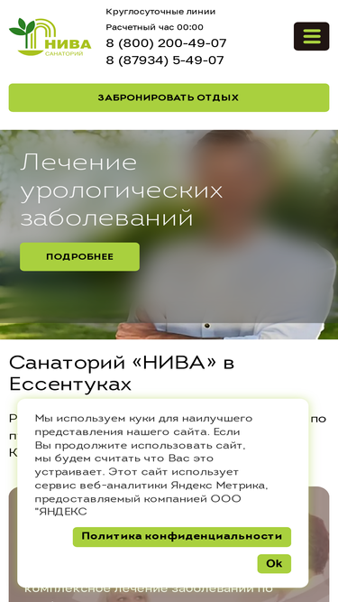 92%Команда санатория. Санаторий «Нива» расположен рядом с курортным парком Ессентуков. Современное лечение. Уютные номера. Бассейн и аквааэробика. Детская комната и коворкинг. Четырехразовое питание по системе меню-заказ по 15 диетам.