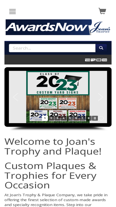 89%Joan's Trophy & Plaque Company's showroom features a complete assortment of the finest custom made awards & specialty recognition items. Hundreds of hardwood, crystal, acrylic, and brass pieces are on display. We are the largest awards & trophy shop in downstate Illinois that specializes in awards trophies & plaques.