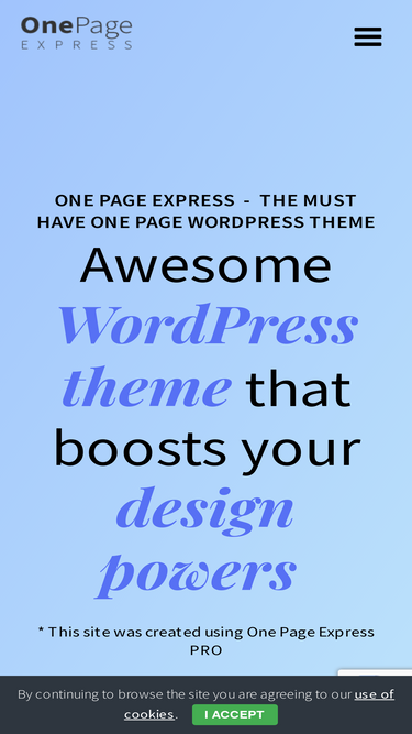 One Page Express helps you craft one page WordPress sites in no time. User-friendly and fully-customizable.