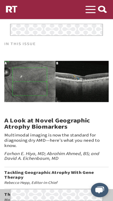 63%Retina Today is a publication that delivers the latest research and clinical developments from areas such as medical retina, retinal surgery, vitreous, diabetes, retinal imaging, posterior segment oncology and ocular trauma. Each issue provides insight...