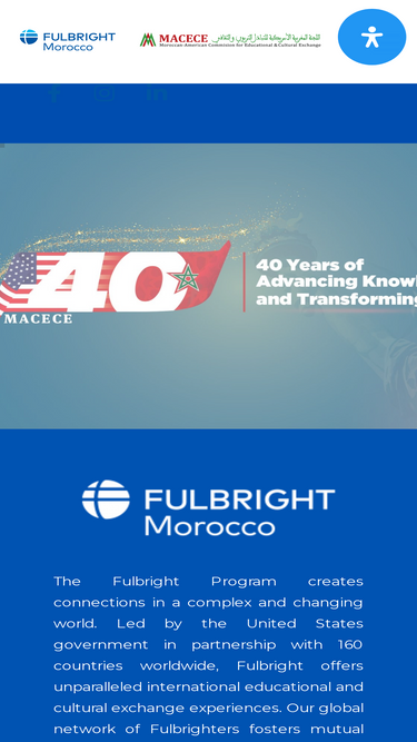 85%Welcome to the Moroccan-American Fulbright Commission! TCLP Program TOEFL/GRE/GMATAt Home Testing Now Available Find Out More What do I need to know before starting my application for Fulbright Study Grant? Discover More Alumni giving back Connecting people connecting nation About MACECE Welcome to the Moroccan-American Fulbright Commission! TCLP Program TOEFL/GRE/GMATAt Home Testing Now Available Find
