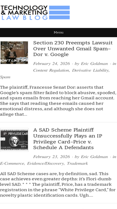 100%Eric teaches and publishes in the areas of Internet Law, Intellectual Property and Advertising & Marketing Law.