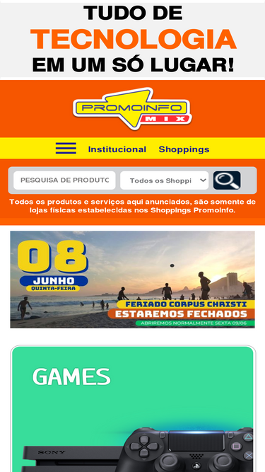 100%A Promoinfo é uma rede de Shoppings de Tecnologia e outros segmentos Os produtos e serviços são de inteira responsabilidade dos lojistas.