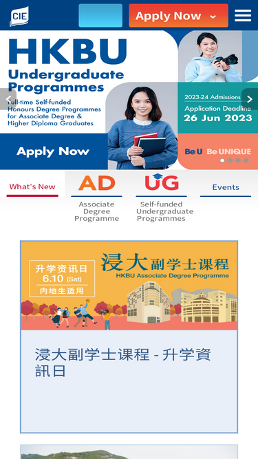 74%The College of International Education (CIE) is a self-funded unit of HKBU, offering full-time Higher Diploma Programme (HD), Associate Degree Programme (AD) and Undergraduate Programmes (UG).