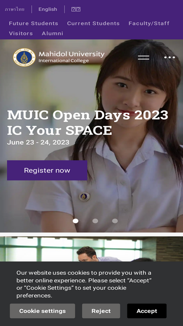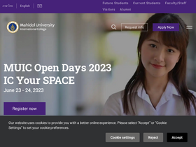 71%Mahidol University International College (MUIC) – Thailand's leading international college offering undergraduate and graduate programs in a diverse, globally connected learning environment.