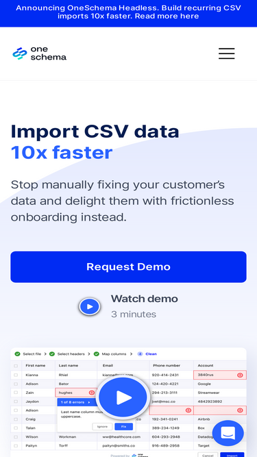 Use OneSchema’s out of the box validations and transforms to launch one-click CSV import 10x faster.