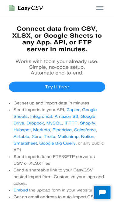 87%Documentation to integrate EasyCSV with your API or Zapier.