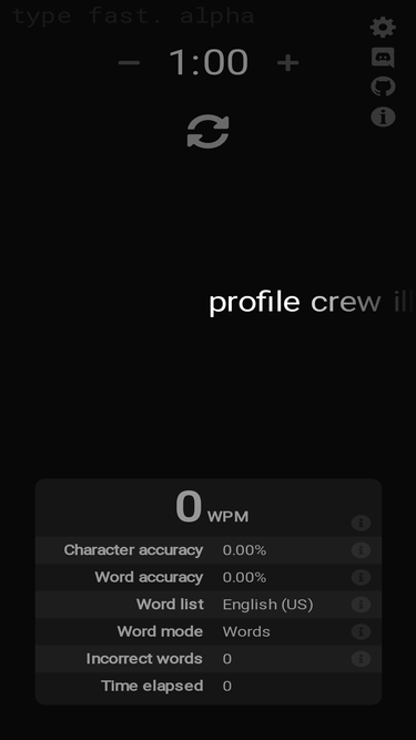 77%at typefast.io you can test your typing speed in a minimalistic way, without skimping out on features such as multilanguage, sentence/word mode, and themes.