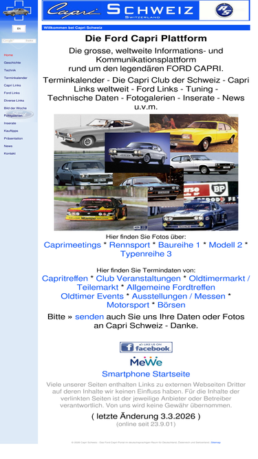 65%willkommen bei capri schweiz. in der fotogalerie finden sie fotos über capritreffen und fordtreffen - rennsport - baureihe 1 - modell 2 - typenreihe 3. im terminkalender finden sie daten von caprimeetings - club veranstaltungen - oldtimermarkt / teilemarkt - allgemeine oldtimer- classic car events - ausstellungen / messen - motorsport - börsen. 50 jahre ford capri
