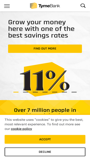 87%Open a Bank Account with TymeBank! Free secure digital personal and business banking, save on monthly bank charges and enjoy the best savings interest rates.