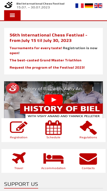 98%The Biel International Chess Festival takes place annually since 1968 in the Congress Centre Biel/Bienne, Switzerland. In addition to the Grandmaster Tournament, eight open tournaments for elite and amateur players takes place.