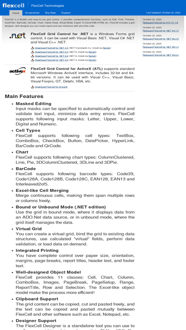 79%flexcell is a flexible grid control, it provides functions such as barcode, chart, masked edit, merge cell, data-binding, export to excel, print, sort, ownerdraw, virtual grid, etc.