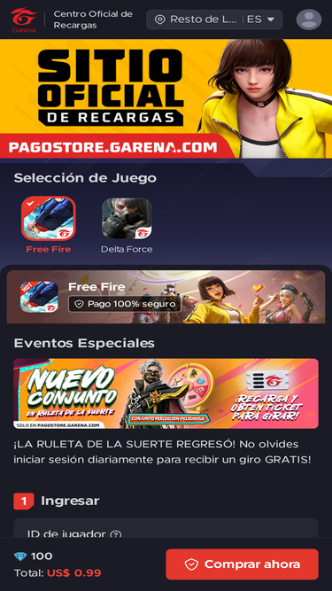 89%La página oficial para recargar diamantes en Free Fire. Varios métodos de pago están disponibles para jugadores de América Latina, incluyendo Tarjetas de Regalo, efectivo, transferencia bancaria, Paypal, tarjeta crédito o débito y más.