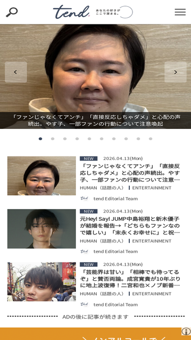 66%tend(テンド)は、「trend+Send=話題を届ける」をコンセプトに、SNSで話題のネタやエンタメ・カルチャーを“自分らしく深める”ための共感メディア