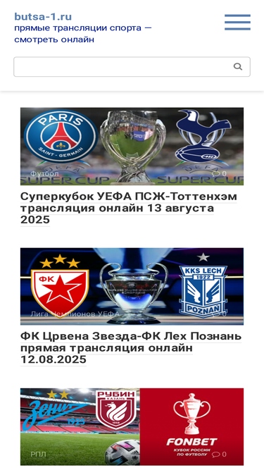 Вы ищите сайт, где можно посмотреть прямые трансляции футбольных матчей! У нас вы найдете эфиры и обзоры матчей - РПЛ, АПЛ, Ла Лига, Серия А, Бундеслига, ЛЧ, ЛЕ и другие!