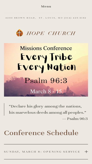 100%The foundation of Hope Church in St. Louis is the belief in giving back to others, near and far. Learn how you can give back through missions today.