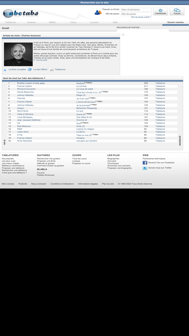 92%des milliers de tablatures et partitions de chansons françaises, incluant grilles d'accords et rythmiques guitare.