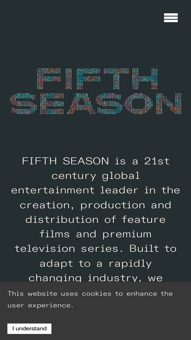 73%FIFTH SEASON is a 21st century global entertainment leader in the creation, production and distribution of feature films and premium television series. Built to adapt to a rapidly changing industry, we serve artists, creators and producers first by empowering creative freedom and ownership.