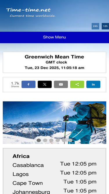 Selon les données de Similarweb relatives aux visites mensuelles, le plus grand concurrent de greenwichmeantime.com en novembre 2025 est time.is avec 11.8M visites. greenwichmeantime.com : son 2e site le plus similaire est worldtimeserver.com, avec 619.3K visites en novembre 2025 et la 3e place est tenue par timezoneconverter.com avec 436.8K.